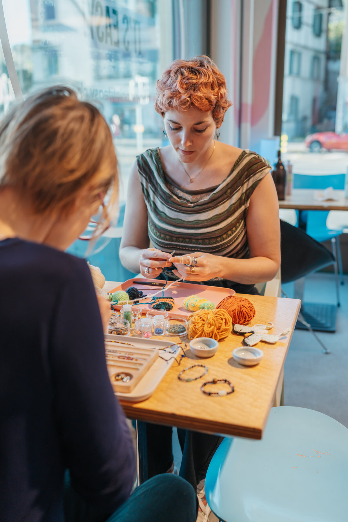 Kreativität braucht Pausen – und genau dafür gibt es unser Creative Café Zürich. Hier kannst du während oder nach deinem Bastelkurs entspannen, neue Leute kennenlernen, Gespräche führen oder einfach nur deinen Gedanken hinterherhängen. Du bekommst vom Kaffee bis zur Inspiration alles geboten. Und übrigens: Du musst nicht unbedingt basteln, um hier vorbeizukommen – gönn dir eine Auszeit und lass dich von der kreativen und chilligen Atmosphäre inspirieren.
