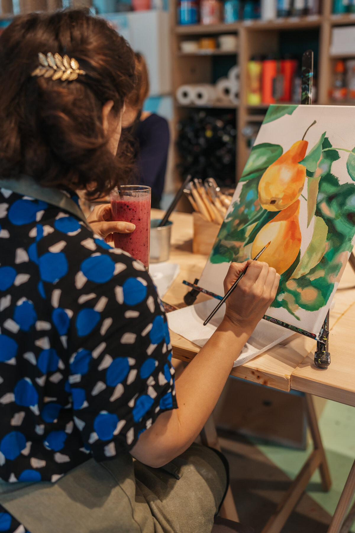 It depends on whether you take part in an event, a course, a studio class or the Open Atelier - there are many ways to become part of our community. But basically it's quite simple: you book your place, come along and paint away. We'll provide you with materials, inspiration and instructions!
