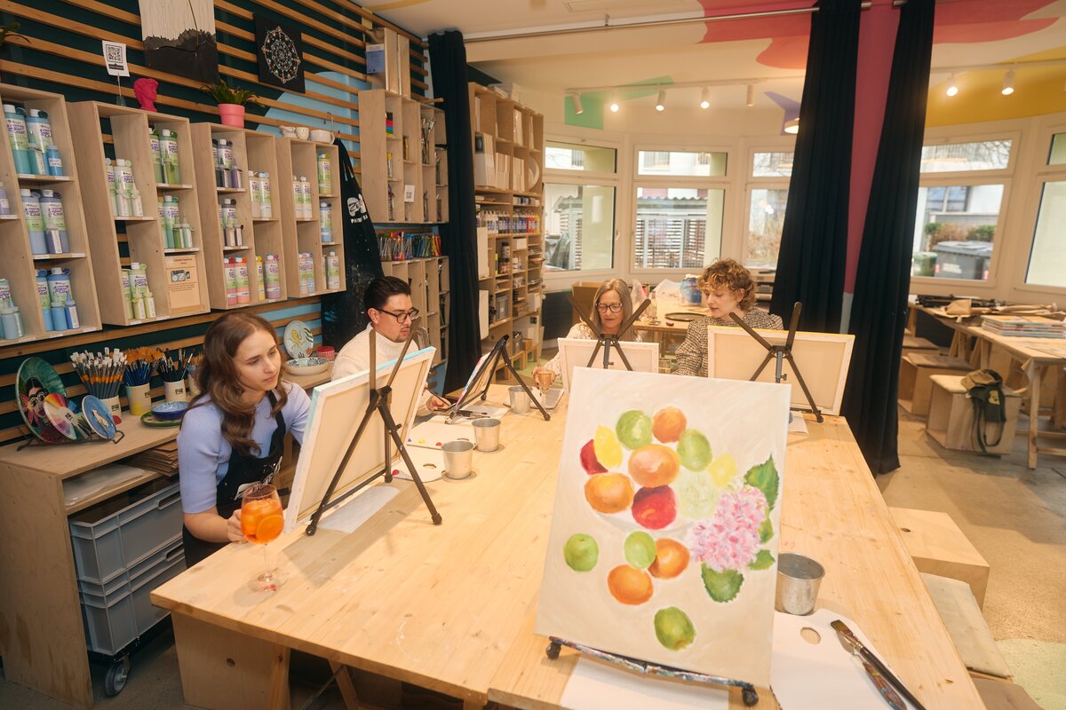 Our studios in Zurich and Basel offer more than painting courses — they’re welcoming spaces to explore, experiment, and grow.