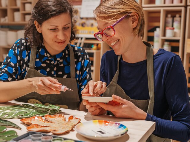 Gönn dir eine kreative Auszeit, bei der du formen, verzieren und geniessen kannst – ganz entspannt und mit viel guter Laune. Ob allein, mit Freund*innen oder als Teamevent: Bei unseren Keramik-Events erwarten dich eine lockere Atmosphäre, tolle Leute und dein ganz persönliches Kunstwerk (zum Mitnehmen – nach dem Brennen 😉).