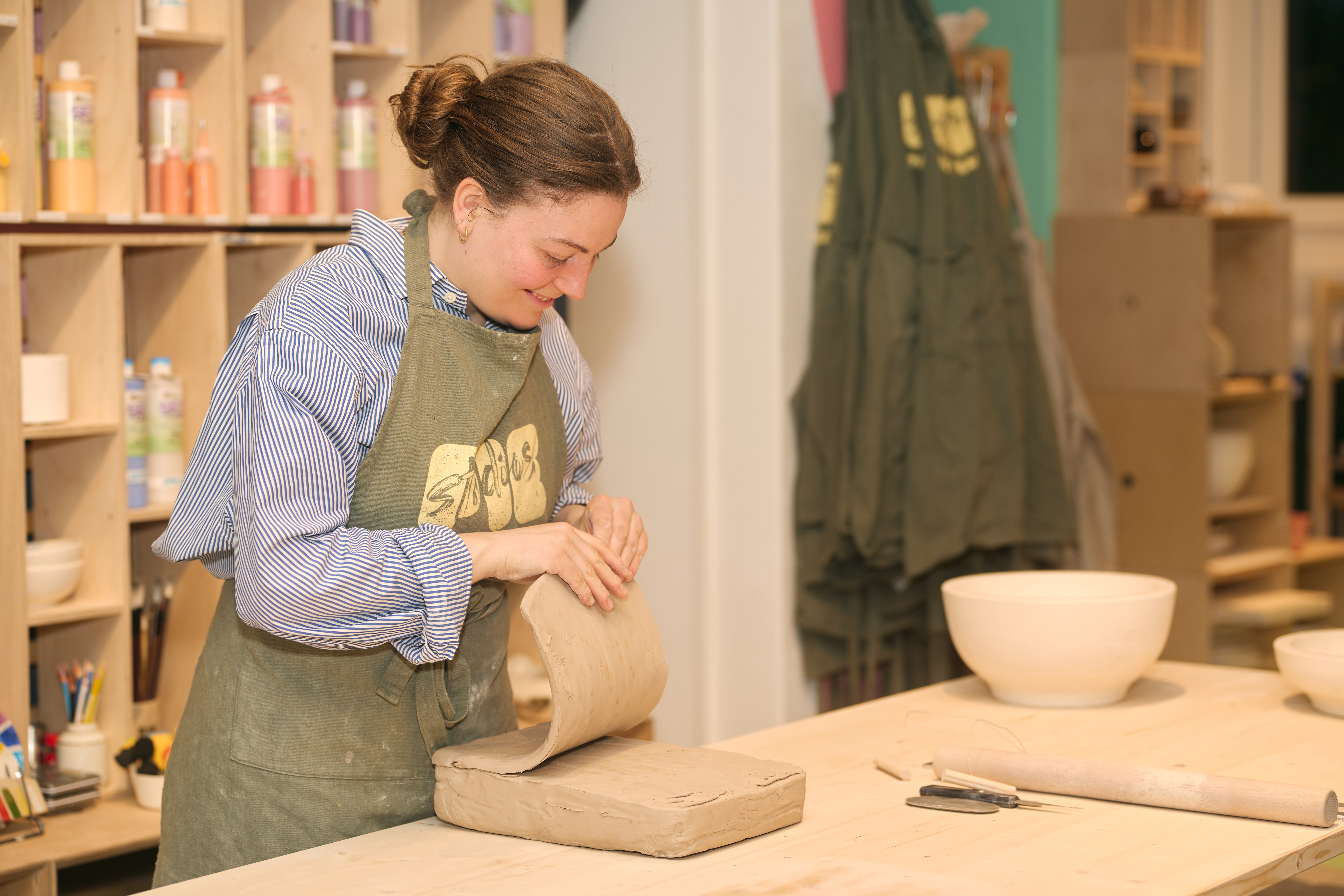 Bei uns findest du eine grosse Auswahl an kreativen Formaten: Events, Workshops, mehrtägige Kurse, Studio Classes und Open Ateliers. Wir bieten Angebote für alle Levels – vom Einstieg bis zur Vertiefung. Du kannst mit Ton arbeiten, Keramik bemalen, Porzellan entdecken oder dich im Handbuilding, Drehscheiben-Drehen oder Glasieren ausprobieren. Für jeden ist etwas dabei – komm vorbei und finde deinen Flow!