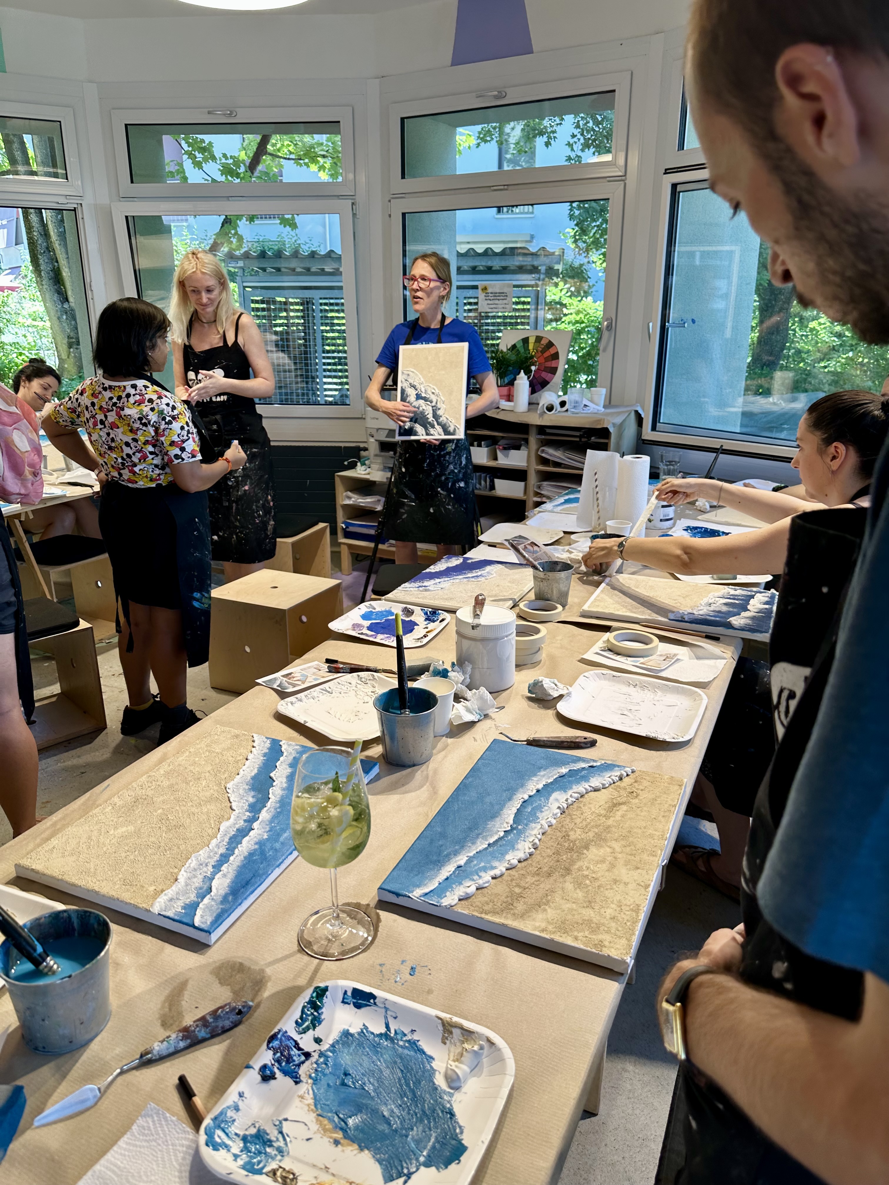 Im Anschluss führt dich einer unserer lieben Kursleiterinnen durch eine entspannte, schrittweise Malsession – locker, inspirierend und absolut anfängertauglich.