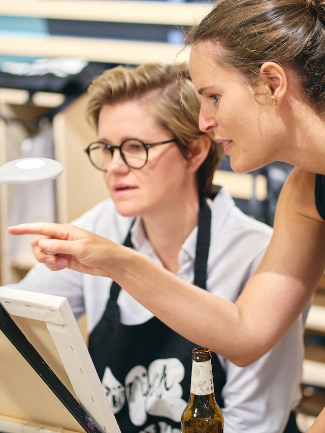 - Interaktive Sessions: Unsere Künstlerinnen und Künstler führen dich Schritt für Schritt durch das gewählte Motiv. Fragen? Immer her damit.
